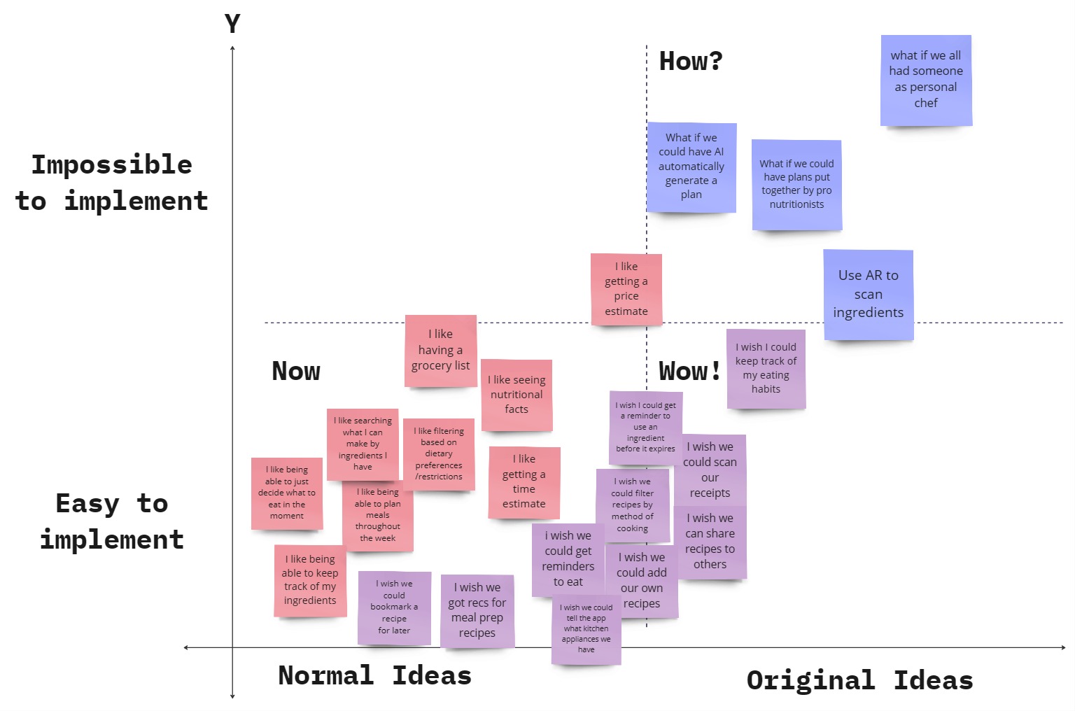 We began to vote on, define, and organize ideas for features based on their feasibility and originality.